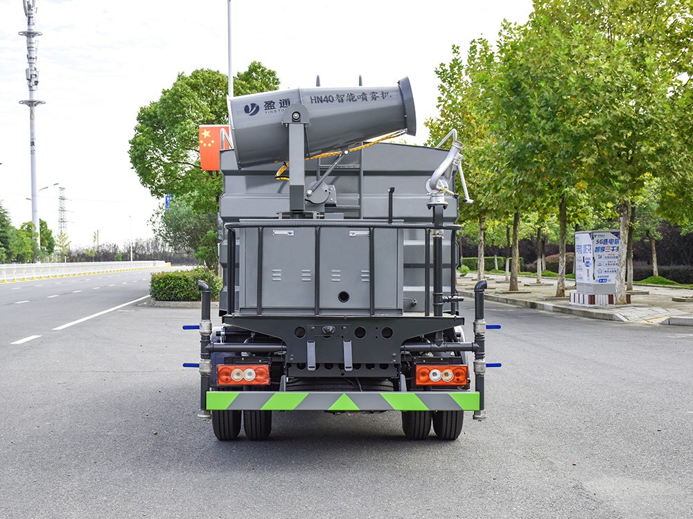 福田5方霧炮灑水車產品配置 1.底盤配置: 福田 H2 駕駛室,發動機全柴 115 馬力,萬里揚 5 檔變速箱, 7.00R16 鋼絲胎,3360 軸距,中控鎖,電動玻璃,T-BOX(全國通用), 5T 后橋,斷氣剎,ABS